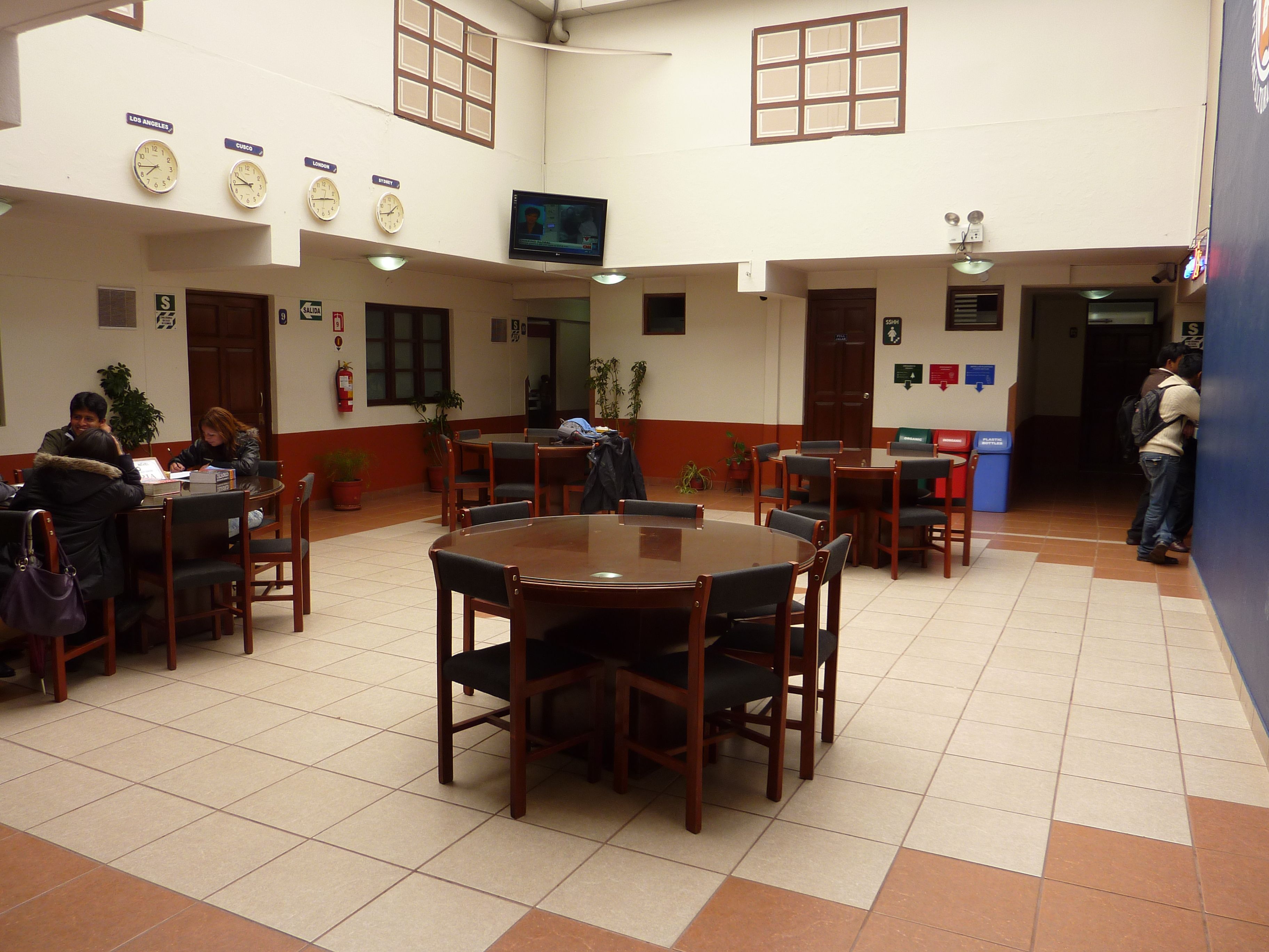 My Spanish class is from 10:00-12:00. If I arrive early I can hang out in the patio at Maximo. There is an open area with tables where students gather in between classes or sit and study or socialize. They also have a computer room with access to the internet and at any given time you can find Internationals and Peruvians hard at work on the computers. There are two of us currently in my Spanish class. We had three last week but Nicole, a girl from Germany, returned home after her lengthly stay. Elizabeth, who happens to live with me at the same house, and I will be together in class for the rest of the month. Our teacher, Ricardo, is very good and I enjoy class a lot and am slowly building my vocabulary. (Yesterday when I was searching for ticket prices at the travel agencies I was able to do it all in Spanish–YAY!) I guess class is helping….